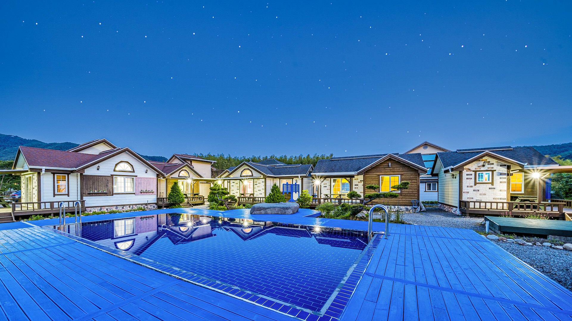 수영장, 자연이 살아 숨 쉬는 실내, 복충에서 별을 감상하며,